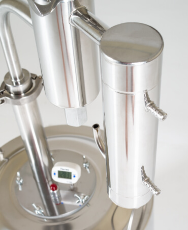 С новым трубчатым холодильником перегонка становится ещё эффективнее: охлаждаемая площадь увеличилась до 187 500 мм², а КПД — до 250%, по сравнению со змеевиком.