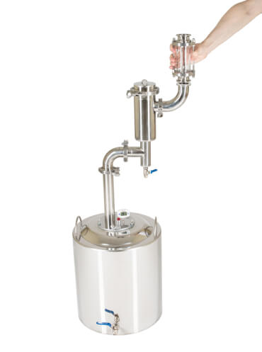 Увеличенный разборный сухопарник с краном для слива сивушных масел не оставит примесям шанса. Вся сивуха оседает на его стенках. Просто слейте её после перегонки.