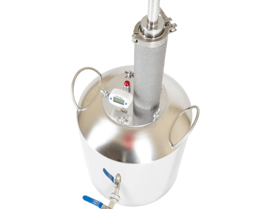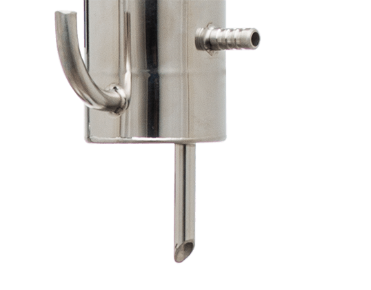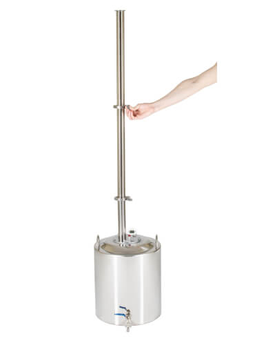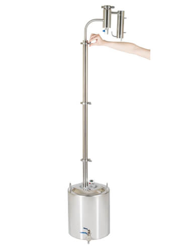 Широкие соединительные трубки диаметром 18 мм и спускной клапан гарантируют полную безопасность при перегонке. Закупорка исключена.